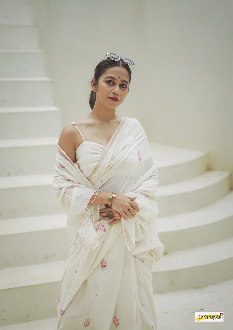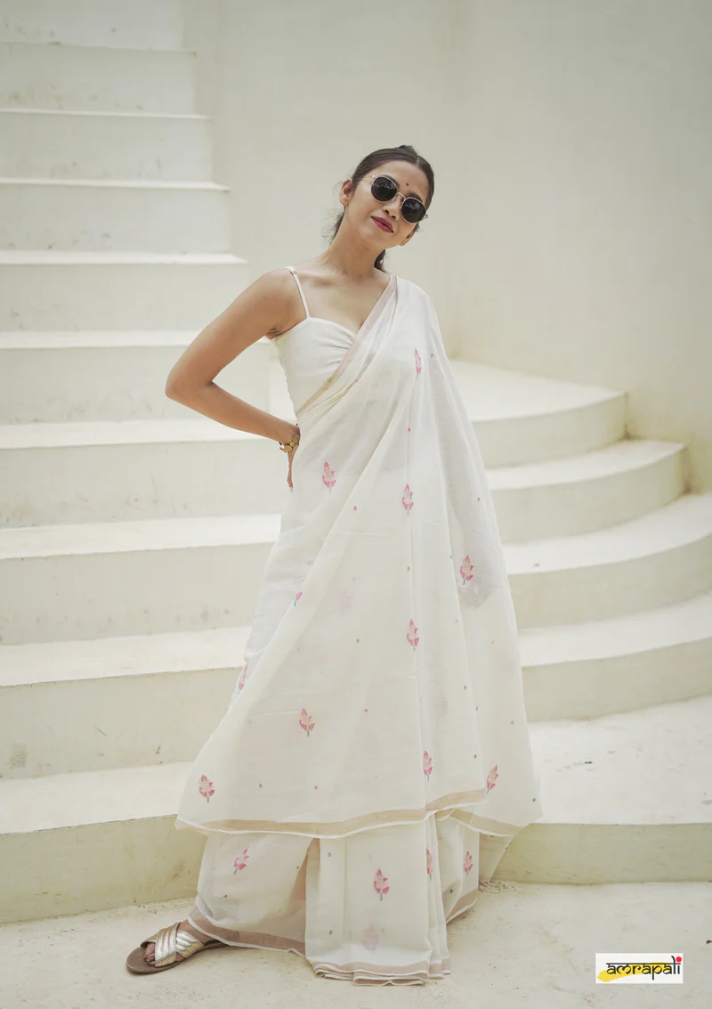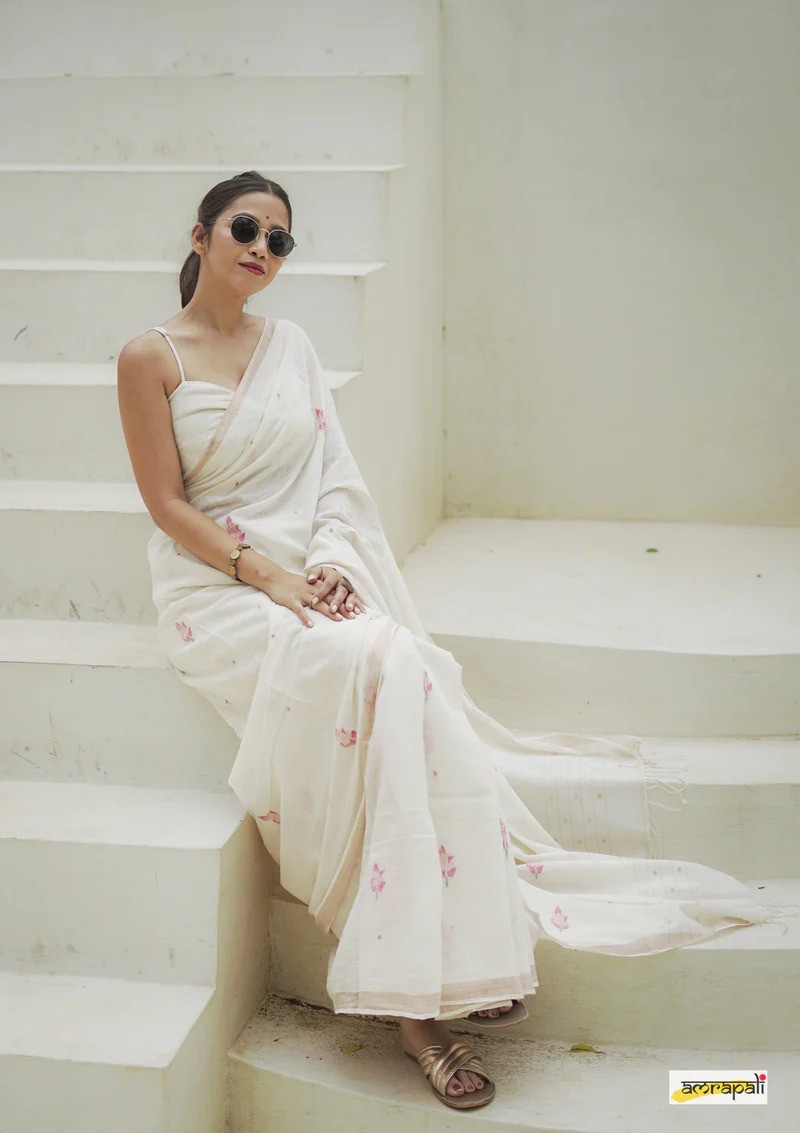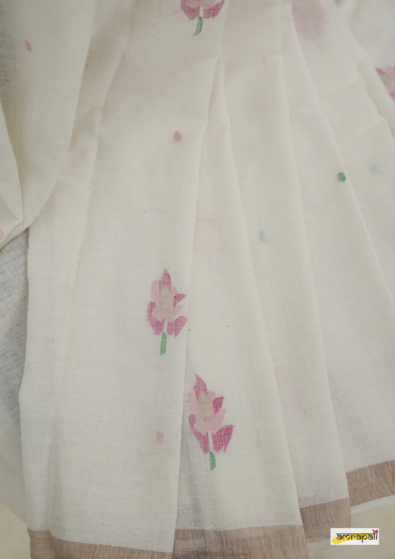 Technique: Handloom (Jamdani – woven on traditional handloom with motifs created by adding supplementary weft threads by hand)